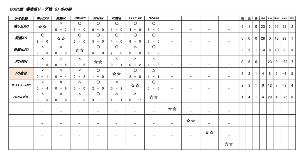 【2025年度】2025年度 港南区リーグ戦 – SL(U-8)の部